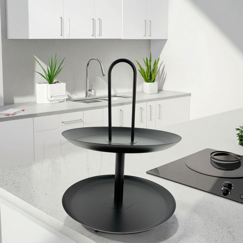 ถาดโลหะสำหรับตกแต่ง2ชั้นถาดเสิร์ฟเค้กโลหะสีดำสำหรับตกแต่งโต๊ะกลางงานแต่งงานและงานเลี้ยง