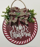 สุขสันต์วันคริสต์มาสประตูพวงหรีดทรงกลมแขวนผนังไม้ป้ายต้อนรับพร้อมจี้คริสต์มาสตกแต่งวันหยุด