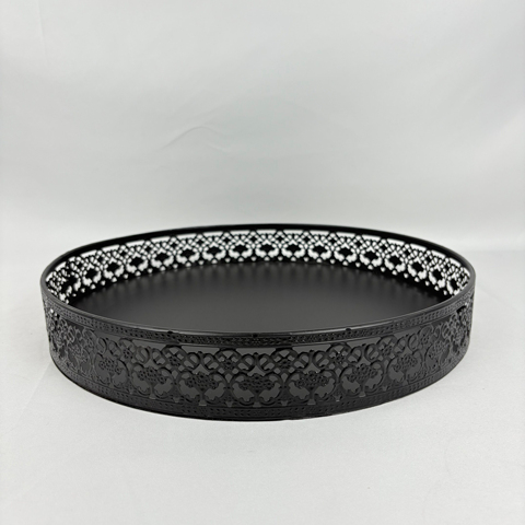 กล่องเก็บเครื่องสำอางทรงกลมทำจากโลหะสีดำถาดเสิร์ฟสำหรับตกแต่งบ้านสำหรับงานเลี้ยงอาหารค่ำวันเกิดและเสิร์ฟอาหาร