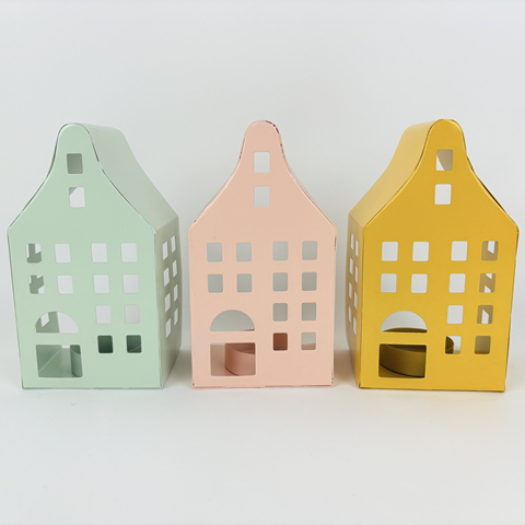 เชิงเทียนเหล็กรูปทรงบ้านโคมไฟเชิงเทียนตั้งโต๊ะทำจากโลหะทรงเทียนสำหรับสวนในบ้านสไตล์ตะวันออก